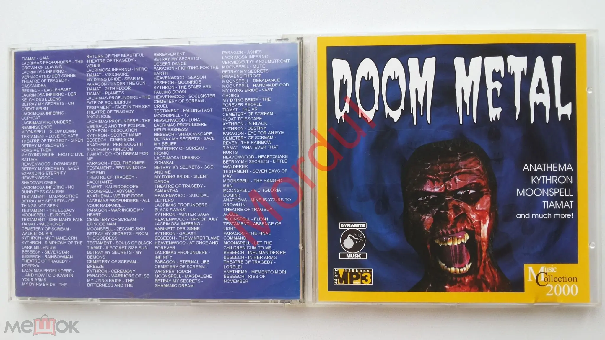 Найдено содержание диска из моего бурного юношества. Прошло уже более 20 лет и единственное, что я помнил о нём: название Doom Metal, цифры 2000, жёлтая окантовка и страшная рожа посередине.